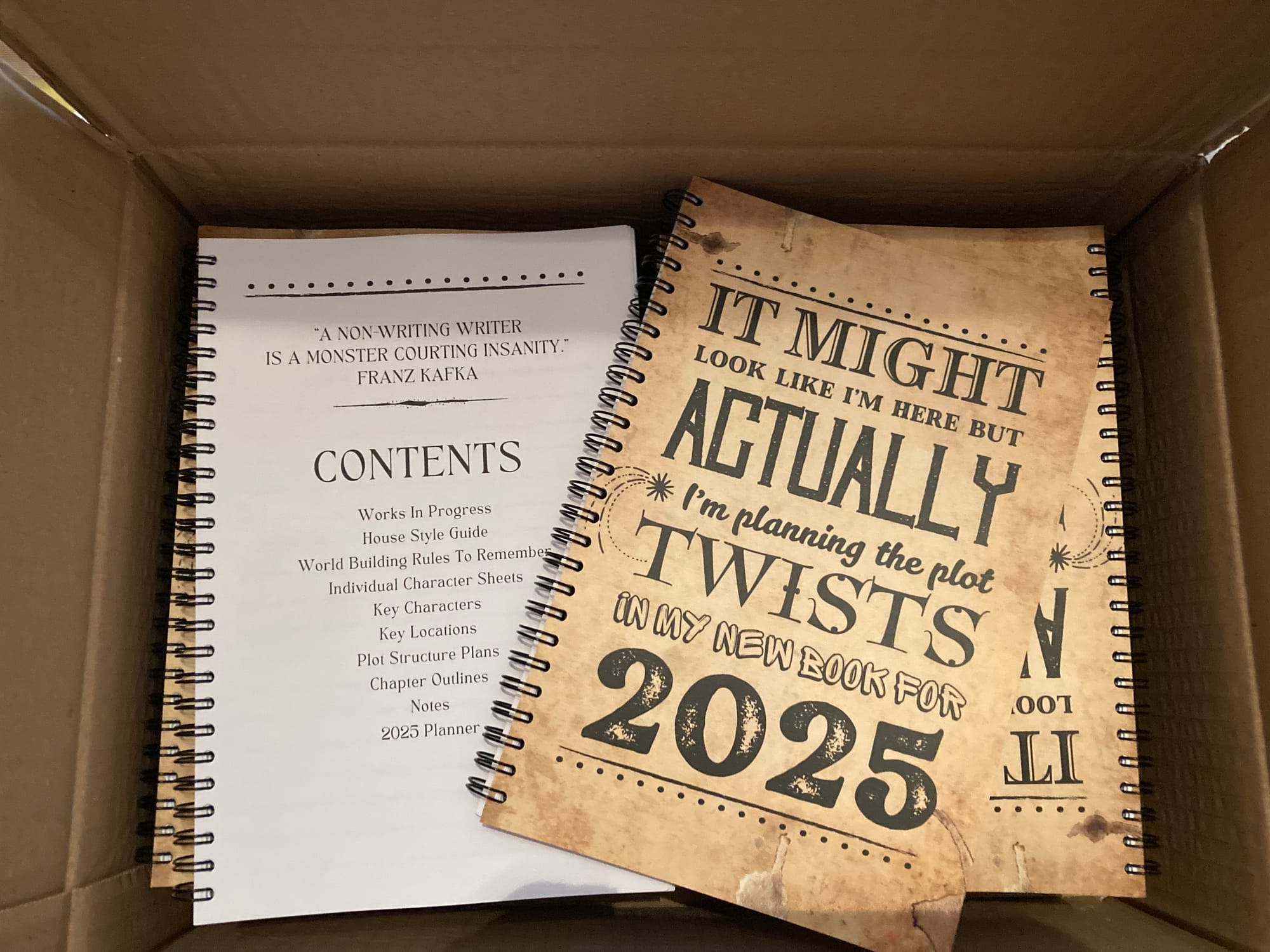 I have a few writer planners for 2025 left if anyone would like one. Not just a diary, these also have pages for character notes, plot planning, world building, chapter pacing and more... Give me a shout if you'd like one (£10 + postage).