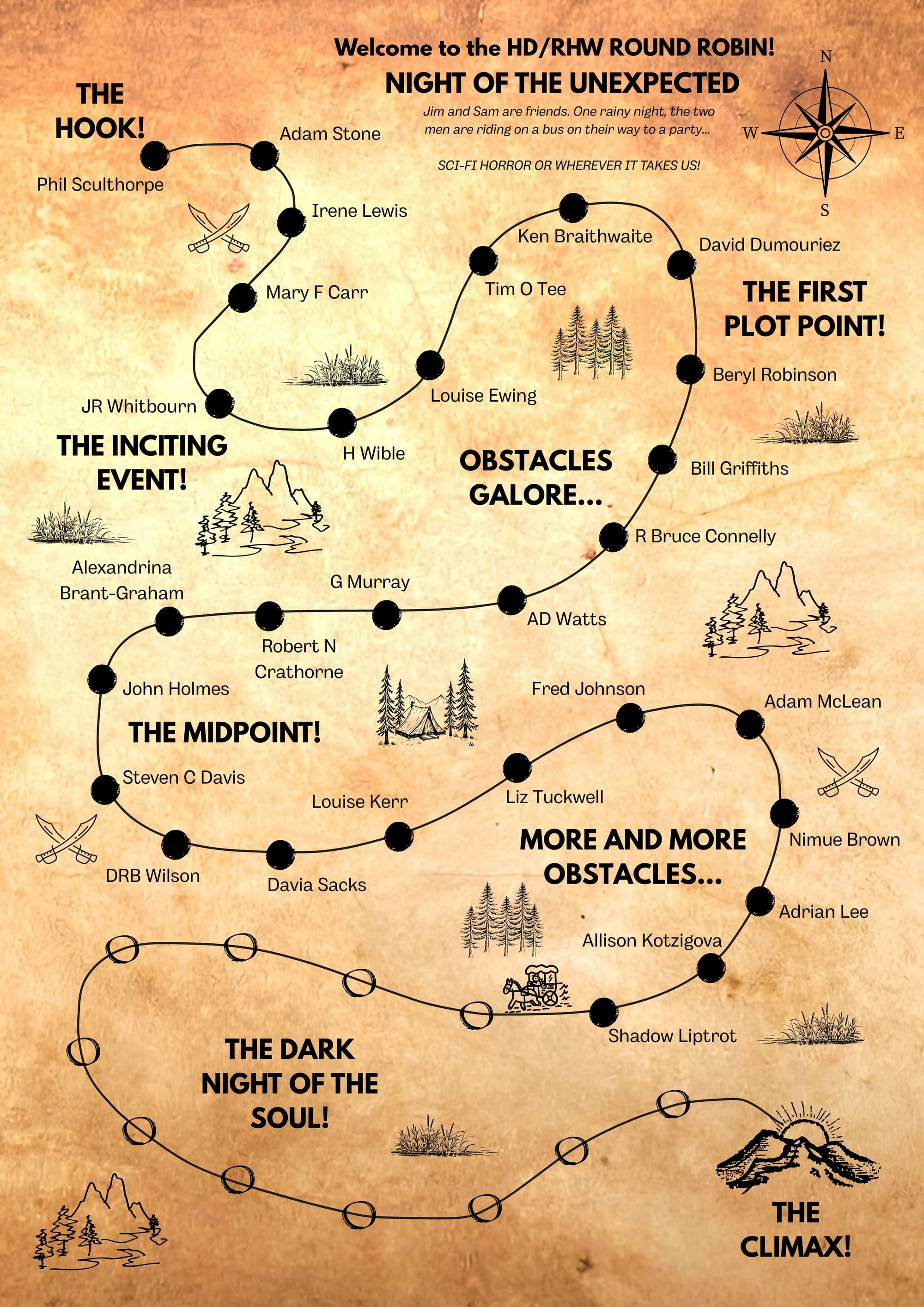 We had so many writers sign up for this mad challenge that we had to reduce the timescale to just 48 hours to return an instalment! And every one has been brilliant!